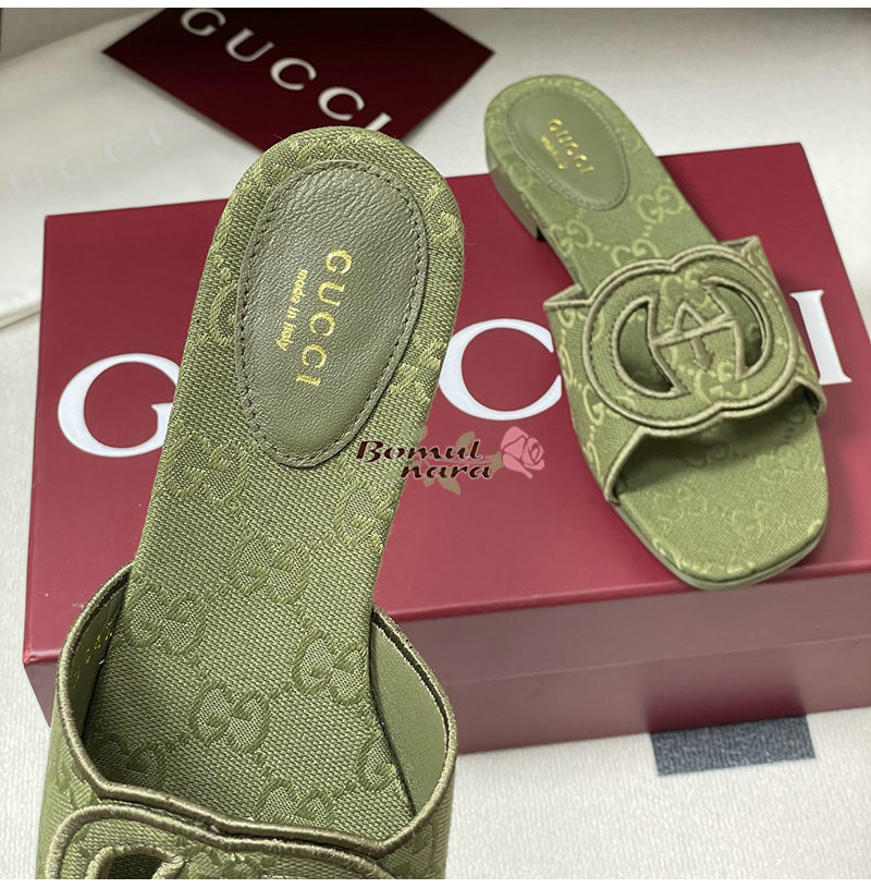GUCCI-790447 3005 구찌 그린 인터로킹 G 슬라이드 샌들