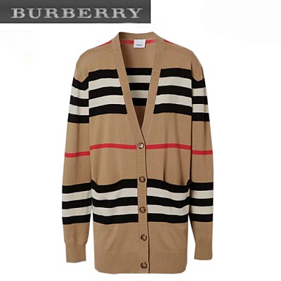 BURBERRY-80161691 버버리 베이지 아이콘 스트라이프 메리노 울 카디건