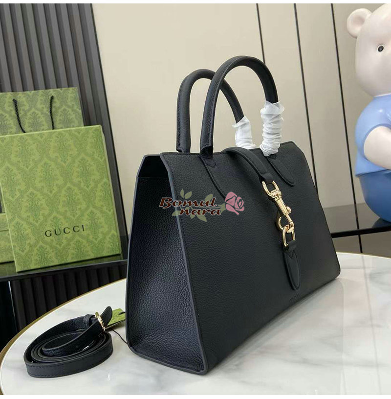 GUCCI-806205 1000 구찌 블랙 가죽 후크 클로저 미디엄 토트백