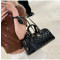 페이던트 가죽에 볼링백 실루엣이 조화를 이루며, 빈티지