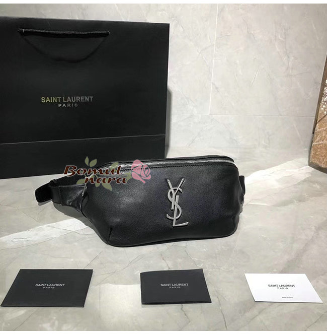지퍼가 달린 벨트 백은 YSL 이니셜로 장식되어