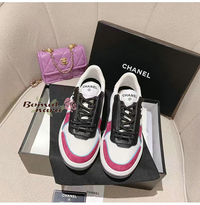 CHANE*-G38803 샤넬 화이트/퍼플 카프스킨 스니커즈 여성용
