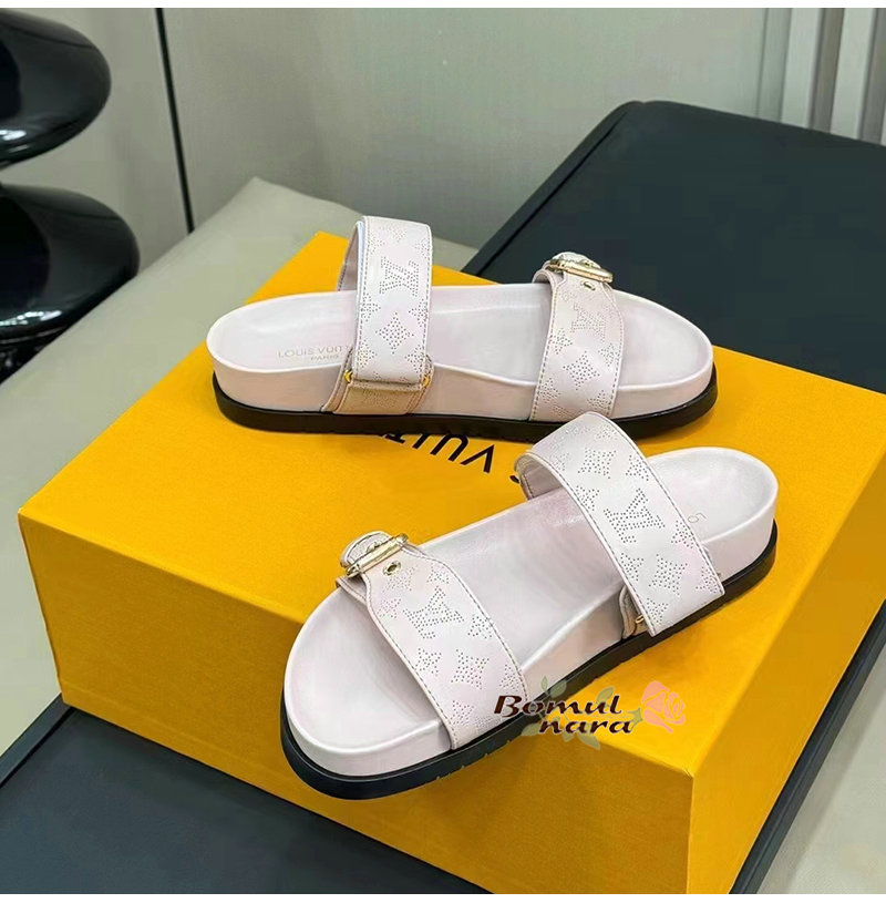 LOUIS VUITTON-1ACKJN 루이비통 핑크 모노그램 마히나 봄 디아 플랫 컴포트 뮬 여성용