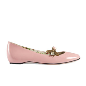 GUCCI-475832 5909 구찌 벌 모양 디테일의 페이던트 핑크 가죽 발레 플랫 여성용