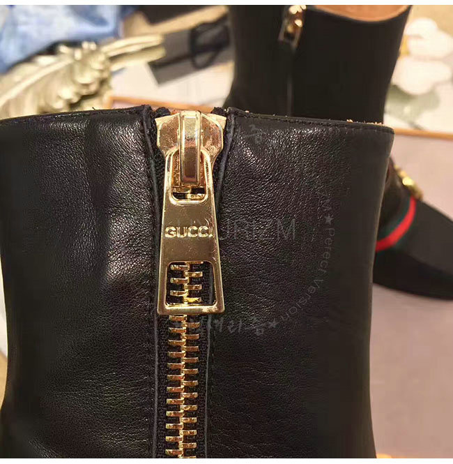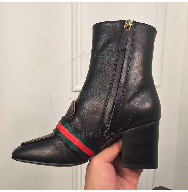 GUCCI-432063 1060 구찌 블랙 가죽 미드힐 앵클 부츠 여성용
