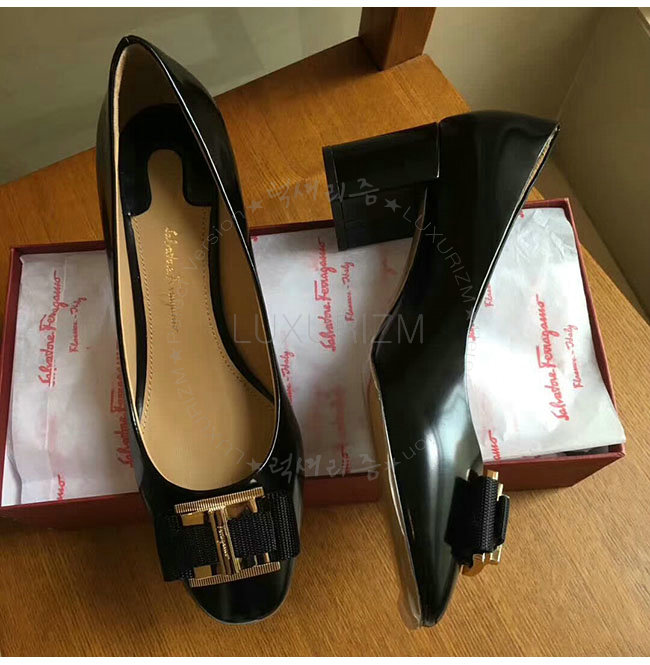 FERRAGAMO-01M671 페라가모 더블 보우 오나먼트 블랙 펌프스 여성용 (2컬러)