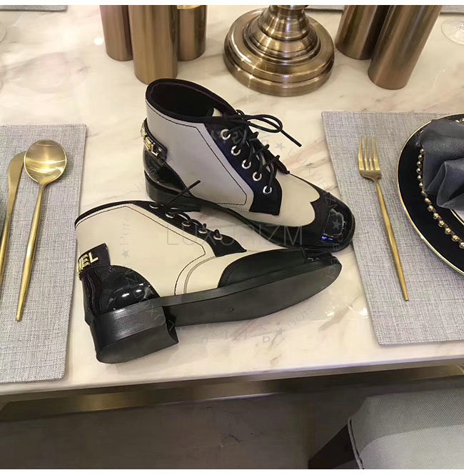 CHANEL-G33266 샤넬 화이트 블랙 카프스킨 레이스업 여성용