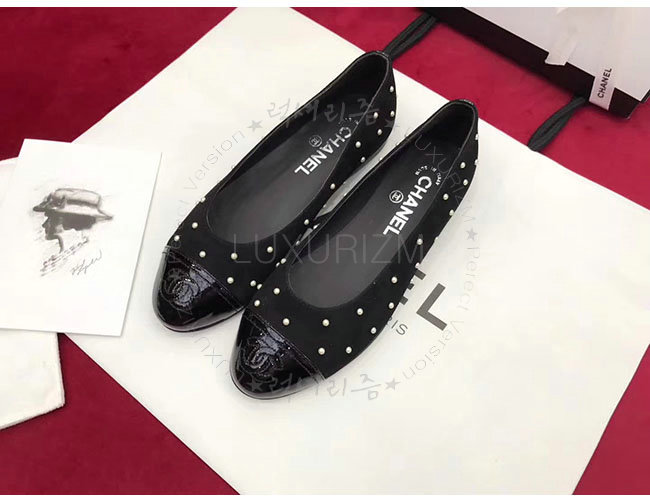 CHANEL-G33424 샤넬 블랙 스웨이드 가죽 플랫 여성용