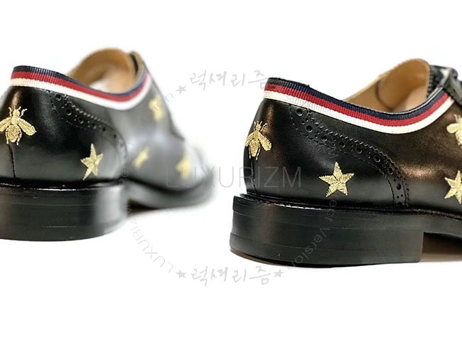 GUCCI-496259 1071 구찌 꿀벌 자수 블랙 가죽 레이스 업 남성용