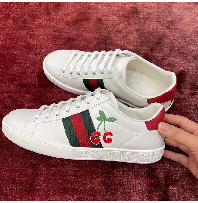 GUCCI-653135 9065 구찌 에이스 화이트 체리 디테일 스니커즈 여성용