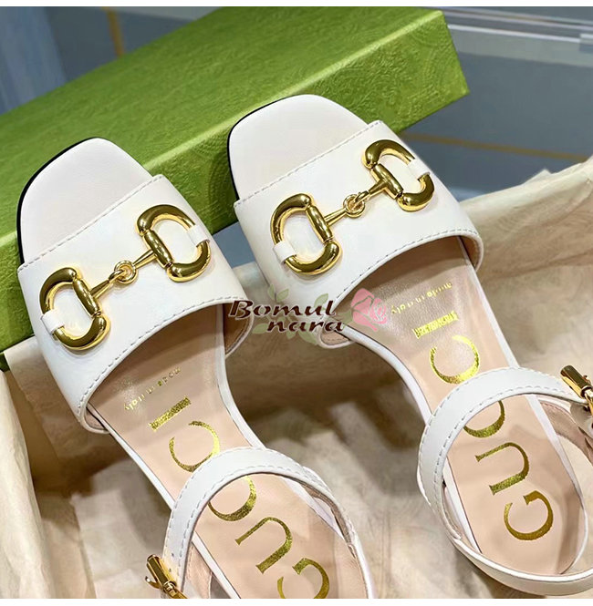 GUCCI-655413 9022 구찌 화이트 가죽 홀스빗 샌들