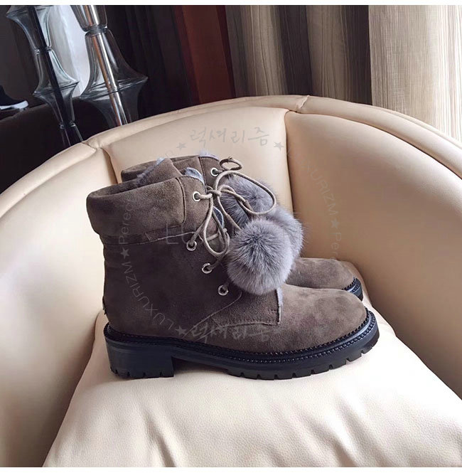 JIMMY CHOO- ELBAFLA 지미추 밍크 스웨이드 가죽 엘바 플랫 앵클 부츠 여성용