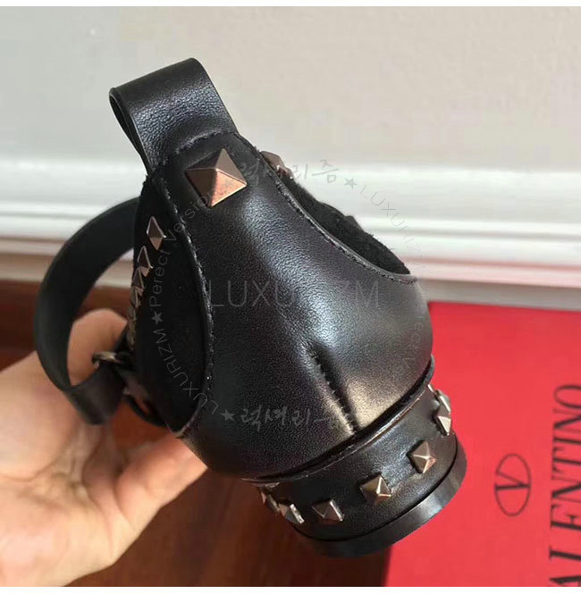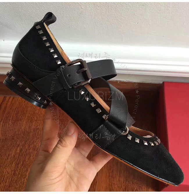 VALENTINO-NW1S0C 발렌티노 블랙 스웨이드 가죽 스트랩 앤 스터드 발레리나 플랫 슈즈 여성용