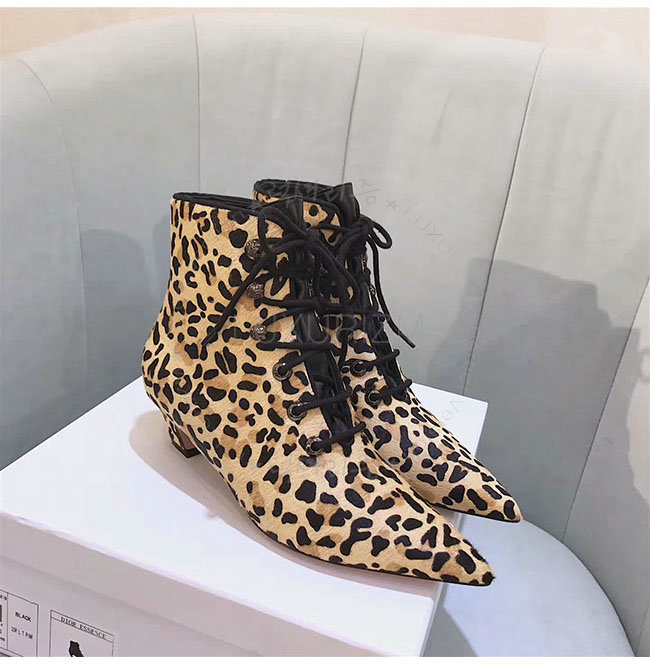 DIOR-KCI405 디올 레오파드 컬러 포니 스타일 송아지 가죽 레이스업 앵클 부츠 여성용