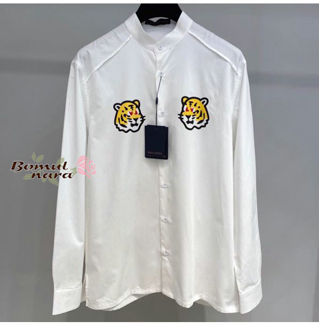 LOUIS VUITT**-1A9GFJ 루이비통 화이트 프린티드 타이거 만다린 칼라 셔츠