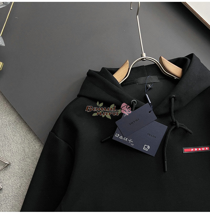 PRADA-02227 프라다 블랙 코튼 후드 티셔츠