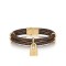 참과 루이 비통 로고 조각, 안전하고 편안한 착용을 돕는 팔찌 여밈장치로 완성된 제품입니다.
