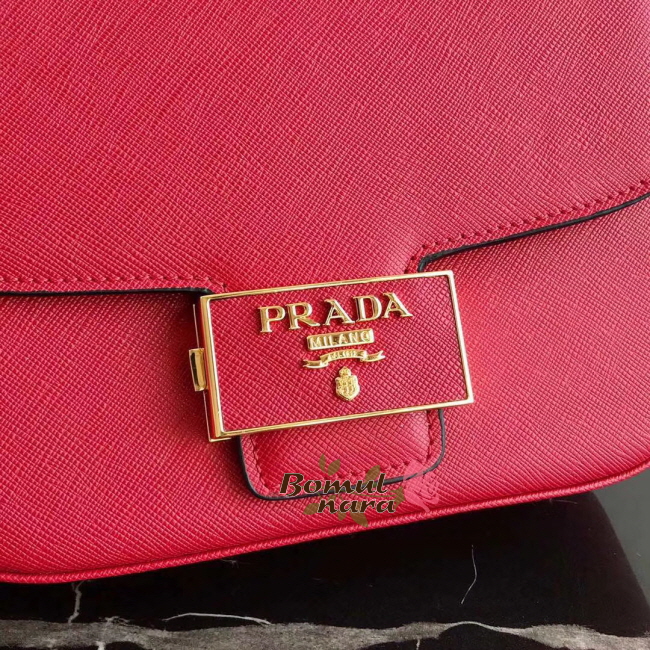 정면 중앙 프라다 이니셜 골드메탈장식이 특징인 숄더백