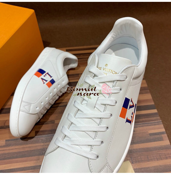 위한 LV 문자 와 흰색 고무 밑창이 새겨 진 브랜드의