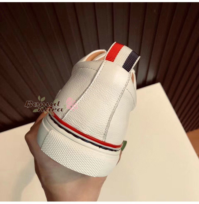 THOM BROWNE-067B001 톰 브라운 화이트 카프스킨 스트레이트 토 캡 트레이너 슈즈 남여공용