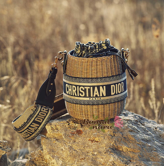 ▶블루 Dior Oblique 자카드 내부 가죽 드로우스트링