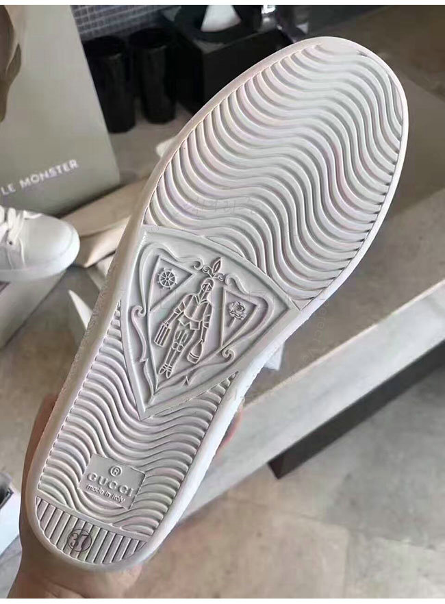 구찌의 아이코닉 골드 벌 모양 자수.