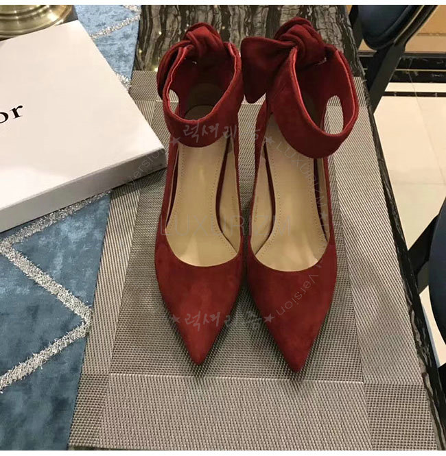 DIOR-KCP346 디올 레드 스웨이드 양가죽 리본 펌프스 여성용