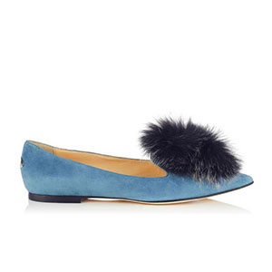 JIMMY CHOO-GALE 지미추 블루 램스킨 토끼털 볼 게일 플랫 여성용