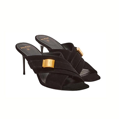 BALMAIN-CN1UR978 발망 블랙 스웨이드 가죽 Uma 뮬