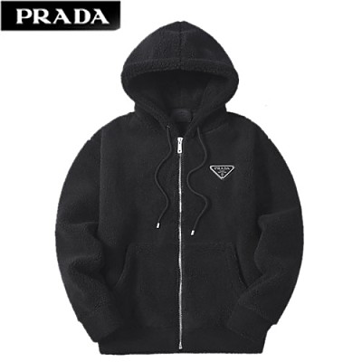 PRADA-12121 프라다 블랙 시어링 트라이앵글 로고 후드 쟈켓 남여공용