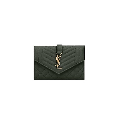 SAINT LAURENT-651026 생 로랑 다크 그린 믹스 마틀라세 스몰 엔벨로프 지갑