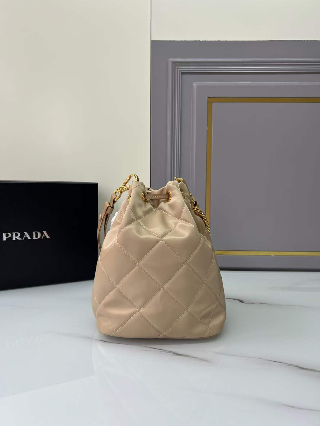 PRADA-1BH038 프라다 베이지 리에디션 1995 체인 리나일론 숄더백 17cm